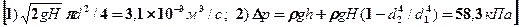 = 1 м. Пренебрегая сопротивлением воздуха в струе и сопротивлением в сопле, определить: 1) расход воды в 1 с, подаваемой фонтаном; 2) разность