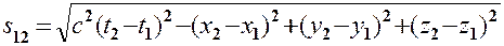 - расстояние между точками обычного трехмерного пространства, в которых эти события произошли. Введя обозначение