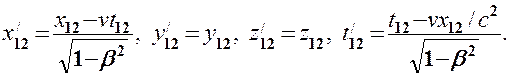 Преобразования Лоренца и следствия из них приводят к выводу об относительности длин и промежутков времени, значение которых в различных системах отсчета разное. В то же время относительный характер длин и промежутков времени в теории Эйнштейна означает относительность отдельных компонентов какой-то реальной физической величины, не зависящей от системы отсчета, т. е. являющейся инвариантной по отношению к преобразованиям координат. В четырехмерном пространстве Эйнштейна, в котором каждое событие характеризуется четырьмя координатами (х, у, z, t), такой физической величиной является интервал между двумя событиями: