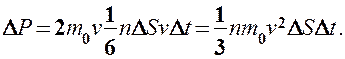 под разными углами и имеют различные скорости, причем скорость молекул при каждом соударении меняется. Для упрощения расчетов хаотическое движение молекул заменяют движением вдоль трех взаимно перпендикулярных направлений, так что в любой момент времени вдоль каждого из них движется 1/3 молекул, причем половина молекул (1/6) движется вдоль данного направления в одну сторону, половина — в противоположную. Тогда число ударов молекул, движущихся в заданном направлении, о площадку