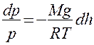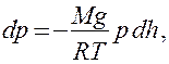 , где р — плотность газа на высоте h (dh настолько мало, что при изменении высоты в этом пределе плотность газа можно считать постоянной). Следовательно,