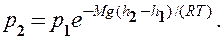 где р — давление на высоте h.