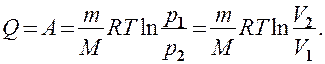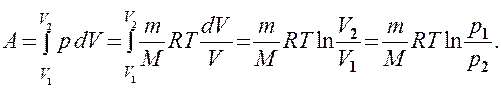 Исходя из выражений (52.2) и (42.5) найдем работу изотермического расширения газа: