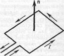 Подобно тому, как при исследовании электростатического поля использовались точечные заряды, при исследовании магнитного поля используется замкнутый плоский контур с током (рамка с током), размеры которого малы по сравнению с расстоянием до токов, образующих магнитное поле. Ориентация контура в пространстве характеризуется направлением нормали к контуру. В качестве положительного направления нормали принимается направление, связанное с током правилом правого винта, т. е. за положительное направление нормали принимается направление поступательного движения винта, головка которого вращается в направлении тока, текущего в рамке (рис. 160).