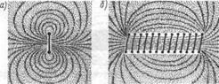 Линии магнитной индукции можно «проявить» с помощью железных опилок, намагничивающихся в исследуемом поле и ведущих себя подобно маленьким магнитным стрелкам. На рис. 162, а показаны линии магнитной индукции поля кругового тока, на рис. 162, б — линии магнитной индукции поля соленоида (соленоид — равномерно намотанная на цилиндрическую поверхность проволочная спираль, по которой течет электрический ток).