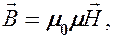 . Для однородной изотропной среды вектор магнитной индукции связан с вектором напряженности следующим соотношением: