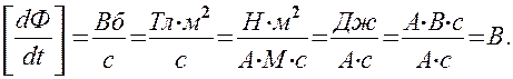 Э.д.с. электромагнитной индукции выражается в вольтах. Действительно, учитывая, что единицей магнитного потока является вебер (Вб), получим