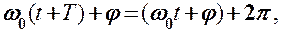 Определенные состояния системы, совершающей гармонические колебания, повторяются через промежуток времени Т, называемый периодом колебания, за который фаза колебания получает приращение 2