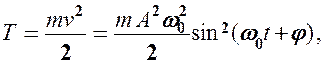 Кинетическая энергия материальной точки, совершающей прямолинейные гармонические колебания, равна