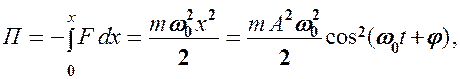 Потенциальная энергия материальной точки, совершающей гармонические колебания под действием упругой силы F, равна