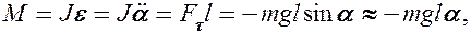 , то в соответствии с уравнением динамики вращательного движения твердого тела (18.3) момент М возвращающей силы можно записать в виде