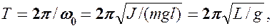 — момент инерции маятника относительно оси, проходящей через точку О, l — расстояние между точкой подвеса и центром масс маятника,