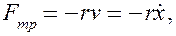 где r — коэффициент сопротивления; знак минус указывает на противоположные направления силы трения и скорости.