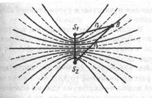 Выражение (156.3) представляет собой уравнение гиперболы с фокусами в точках S 1 и S 2. Следовательно, геометрическое место точек, в которых наблюдается усиление или ослабление результирующего колебания, представляет собой семейство гипербол (рис.221), отвечающих условию (