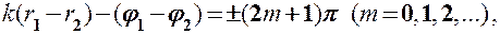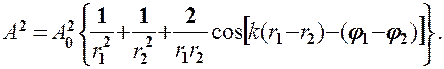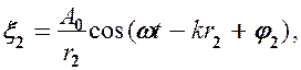 — расстояния от источников волн до рассматриваемой точки В, k — волновое число,