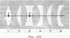 Линзы представляют собой прозрачные тела, ограниченные двумя поверхностями (одна из них обычно сферическая, иногда цилиндрическая, а вторая — сферическая или плоская), преломляющими световые лучи, способные формировать оптические изображения предметов. Материалом для линз служат стекло, кварц, кристаллы, пластмассы и т. п. По внешней форме (рис. 232) линзы делятся на: 1) двояковыпуклые; 2) плосковыпуклые; 3) двояковогнутые; 4) плосковогнутые; 5) выпукло-вогнутые; 6) вогнуто-выпуклые.