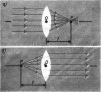 , т. е. лучи падают на линзу параллельным пучком (рис. 234. а), то