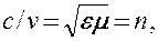 где с и v — соответственно скорости распространения света в вакууме и в среде с диэлектрической проницаемостью