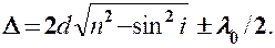 , d, n каждому наклону i лучей соответствует своя интерференционная полоса. Интерференционные полосы, возникающие в результате наложения лучей, падающих на плоскопараллельную пластинку под одинаковыми углами, называются полосами равного наклона.
