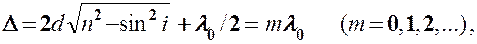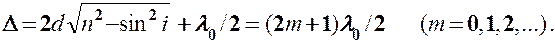 /2 обусловлен потерей полуволны при отражении света от границы раздела. Если n > n о, то потеря полуволны произойдет в точке О и вышеупомянутый член будет иметь знак минус, если же n < n о, то потеря полуволны произойдет в точке С и