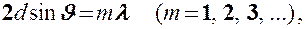 т. е. при разности хода между двумя лучами, отраженными от соседних кристаллографических плоскостей, кратной целому числу длин волн