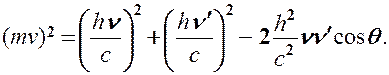 — масса покоя электрона). Фотон, столкнувшись с электроном, передает ему часть своей энергии и импульса и изменяет направление движения (рассеивается). Уменьшение энергии фотона означает увеличение длины волны рассеянного излучения. Пусть импульс и энергия рассеянного фотона равны