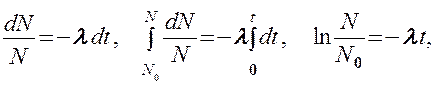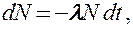 — постоянная для данного радиоактивного вещества величина, называемая постоянной радиоактивного распада; знак минус указывает, что общее число радиоактивных ядер в процессе распада уменьшается.