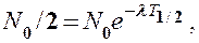 — время, за которое исходное число радиоактивных ядер в среднем уменьшается вдвое. Тогда, согласно (256.2),