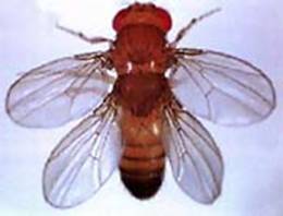 Слева: плодовая мушка Drosophila melanogaster (https://www.tmd.ac.jp/artsci/biol/textlife/fruitfly.jpg), один из основных модельных объектов генетики животных. Справа: мутация bithorax у дрозофилы (https://evolution.berkeley.edu/evosite/evo101/IIIC6Development.shtml): превращение третьего сегмента груди в дубликат второго, в результате чего у мухи появляется ещё одна пара крыльев, а также второй желудок.