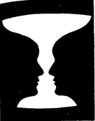 Рис. 5.2. Ваза Рубина. На этом рисунке фон может быть либо черным, либо белым. Это зависит от того, что человек воспринимает – вазу или два профиля. Фигура и фон взаимозаменяемы: фигура может превратиться в фон, а фон – в фигуру.