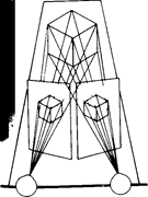 Рис. 5.7. Бинокулярное зрение. Тот факт, что в одном глазу получается двумерное изображение предмета, немного отличное от изображения в другом глазу, позволяет мозгу объединить эти два изображения в один трехмерный образ.