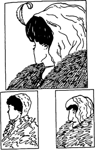 Рис. 5.17. Кого вы видите на верхнем рисунке - старую ведьму или молодую модницу? Посмотрите на два нижних рисунка, и после этого вы будете видеть ту и другую поочередно.