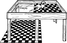 Рис. 5.21. Дети, как и детеныши животных, по-видимому, обладают врожденной способностью к восприятию глубины, благодаря которому они избегают «провалов», даже накрытых стеклом.