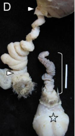 Вагина (слева) и пенис (справа) уток Anas platyrhynchos, у которых распространена насильственная копуляция
