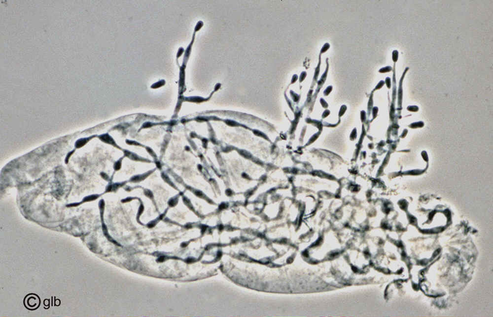 Слева - здоровая бделлоидная коловратка, справа - то, что от нее остается после заражения грибом Rotiferophthora
