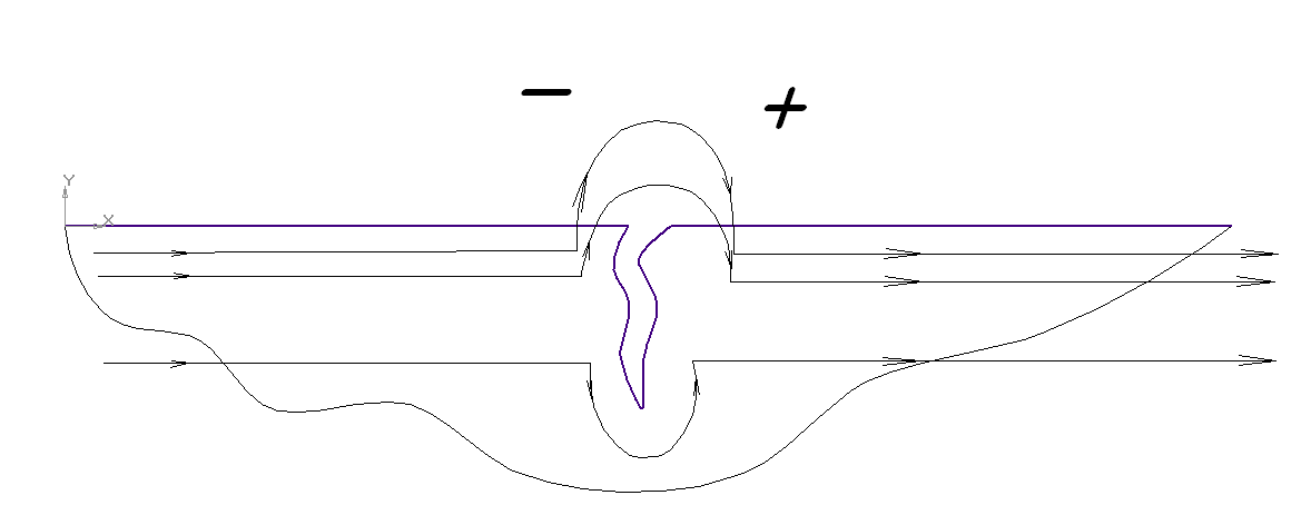 Рисунок 1- Схема возникновения магнитных полей рассеяния при продольном намагничивании детали