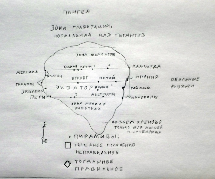 Расселились они возле двух высокогорных морей с пресной водой и приручили большинство животных-гигантов. Прошло несколько поколений, гравитация менялась, человек и большинство гигантов приняли нынешний облик, овладевали мастерству исскуств, наук и главное появилась письменность и календарь, показывающий 13 д., 20 месяцев и 260дней, назначенных Ярилом Земле. Ещё через поколение, два западное население, в основном племя майя, выросло и достигло культурных и технических высот (сравнить нынешних японцев с диким племенем Африки), выстроило города. Ну и, конечно же, не такие уж и загадочные пирамиды (я ещё в 90х понял, зачем они, но мне это как-бы и не надо было, а жаль, в конце расскажу для чего они). Каменоломней же возможно было нынешнее Карибское море, где добывался гранит (с судьбоносными последствиями).