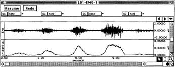 Удобно расположите рабочую руку на столе. Не напрягая руку, сомкните пальцы вокруг рукояти гантели. Включите запись, подождите 2 секунды, аккуратно и четко проведите сгибание-разгибание руки в локтевом суставе, подождите 2 секунды, остановите запись, нажав Suspend. Запись должна приостановиться, давая вам время на проверку данных и подготовку к следующему сегменту регистрации.