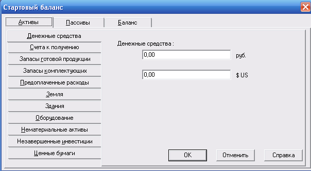 Рисунок 10 – Меню «Стартовый баланс. Активы»