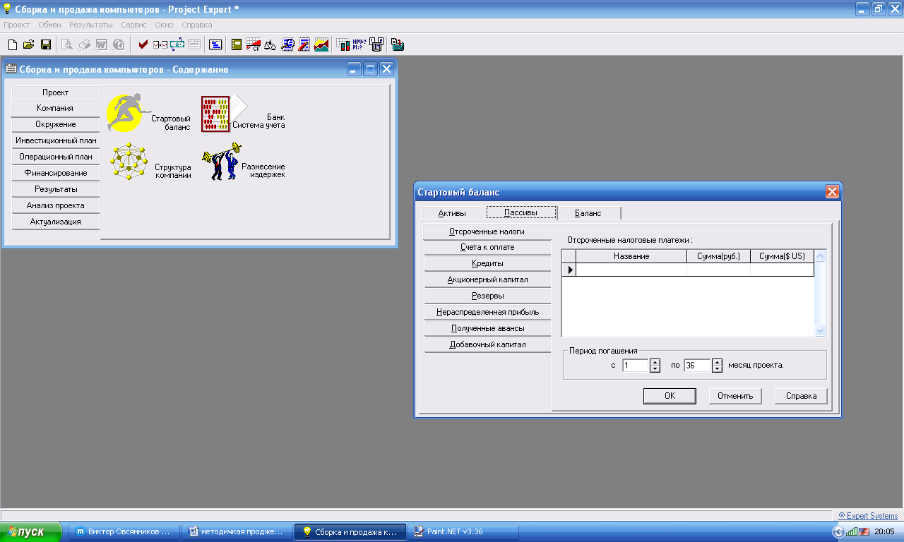 В модуле «Структура компании» содержится информация об организационной структуре рассматриваемой компании. В программной среде Project Expert предусмотрено 3 варианта банковской системы учета – FIFO, LIFO и «по среднему».