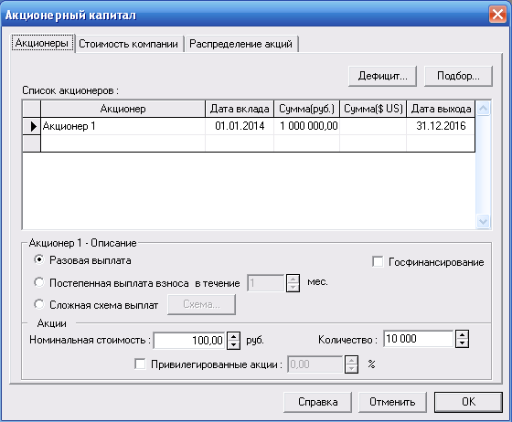 Рисунок 27 – Ввод данных об акционерном капиталле