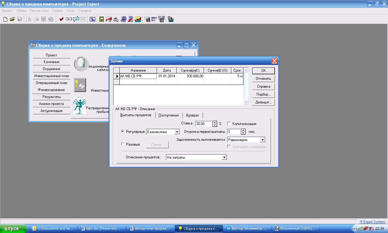 Обратите внимание: Ввод данных, характеризующих стратегию формирования капитала проекта, осуществляется только после проведения расчета для определения потребности в капитале, при этом все данные, характеризующие поступления и затраты в проекте, должны быть уже введены.