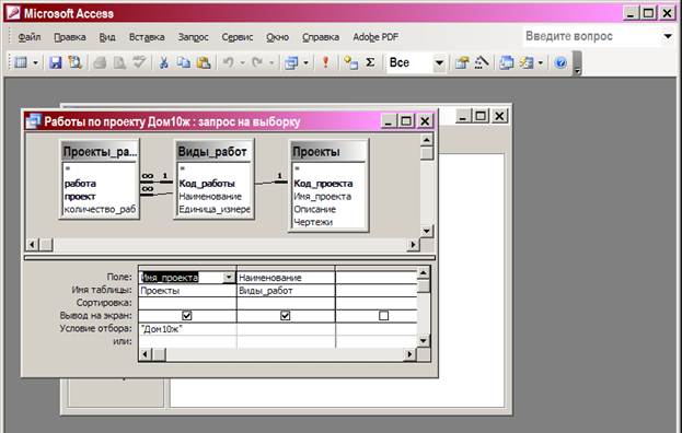 Ниже показан этот запрос в Конструкторе и ниже в окне – результат.