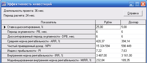 Справка: Важно понять, насколько эффективна операция вложения денежных средств в данный проект по сравнению с другими видами деятельности. Имеет ли смысл вкладывать деньги в этот бизнес? В сущности, это основной вопрос, на решение которого направлены усилия. В поисках ответа на него помогут показатели эффективности инвестиций.