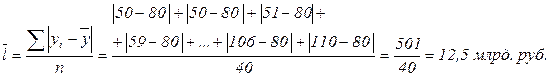 110 – 50 =60 млн. руб. –разница между крайними значениями размера прибыли в совокупности 40 предприятий оставляет 60 млн. руб.;
