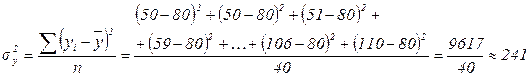 показывает, что в среднем размер балансовой прибыли каждого из 40 предприятий отклоняется от среднего значения (80 млн. руб.) на 12,5 млн. руб. в большую и меньшую сторону;