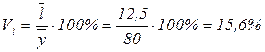 – размер отклонений индивидуальных значений размера балансовой прибыли предприятий от среднего значения, выраженный в процентах, составляет 15,6%;