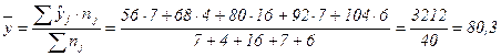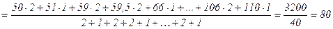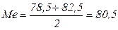 На 20 месте в дискретном ряду распределения предприятий находится предприятие с размером балансовой прибыли 78,5 млн. руб., на 21 месте – предприятие с размером прибыли 82,5 млн.руб. (табл. 3.1, столбец 5).