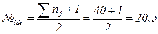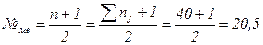 1 шаг. Определение местоположения (номера) медианы в ряду: