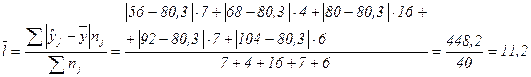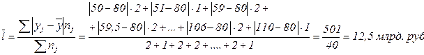- среднее линейное отклонение в дискретном вариационном ряду определяется по следующей формуле: